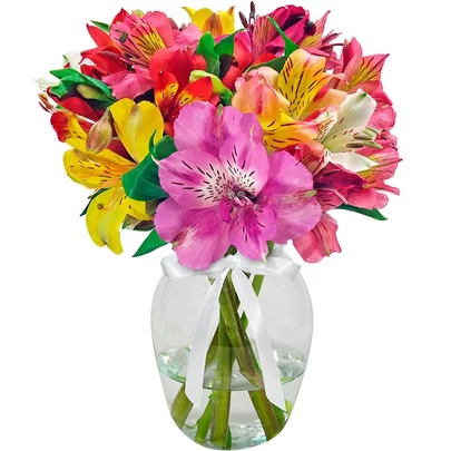 LUXUOSAS ASTROMÉLIAS COLORIDAS NO VASO